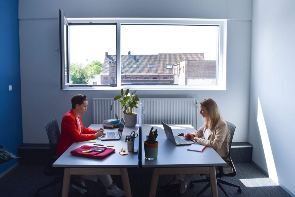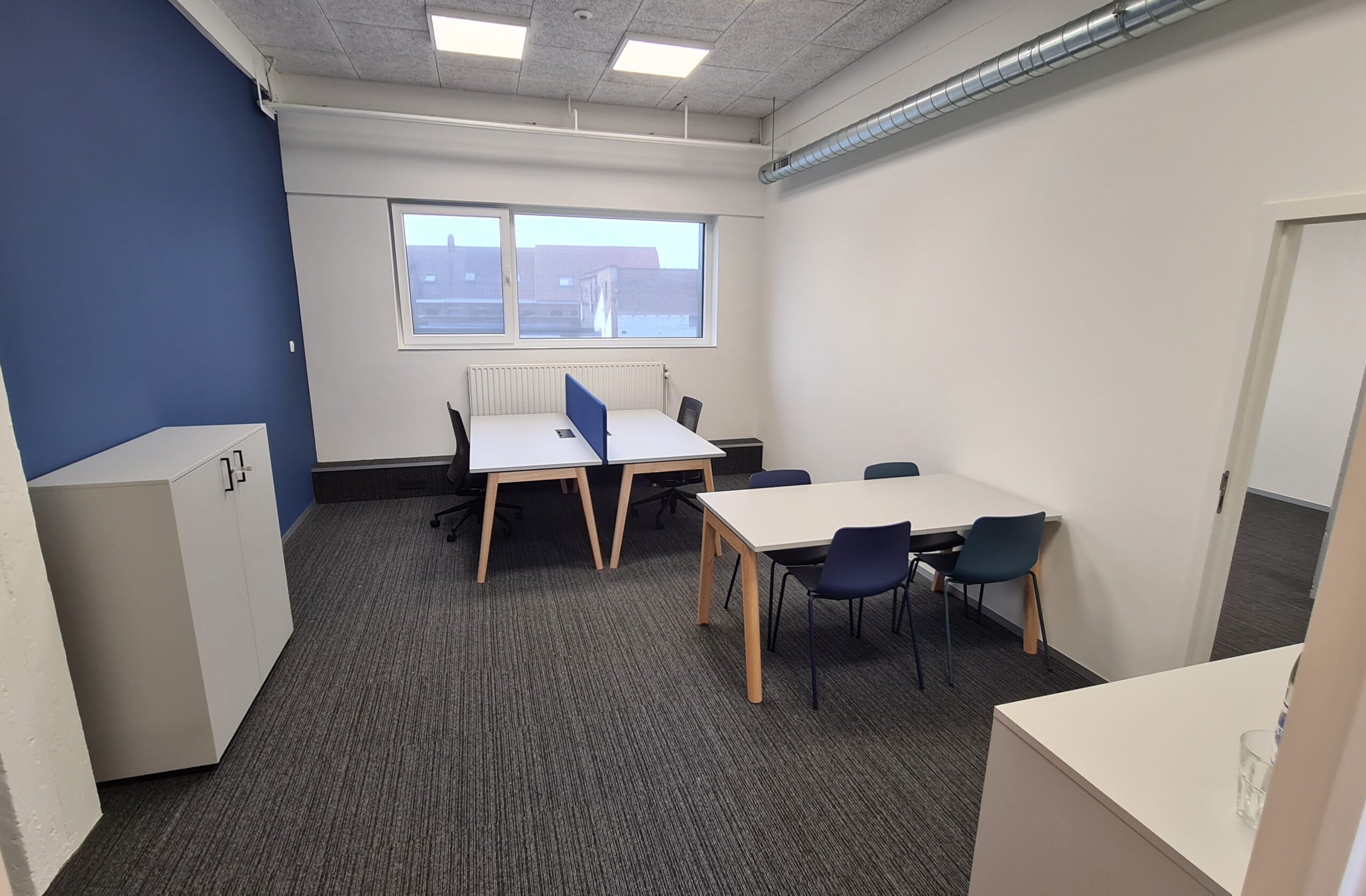 Welkom in de burelen van het Spiegelpark. Twee verdiepingen vol bedrijvigheid in 14 kantoren.