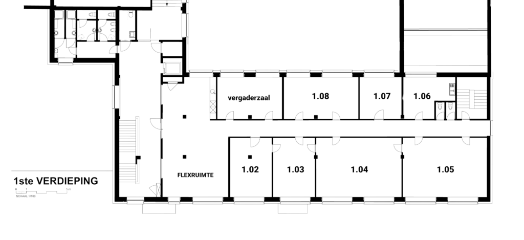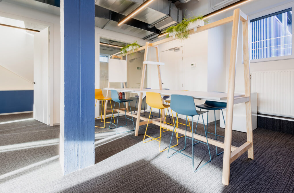 Elke verdieping is voorzien van een gemeenschappelijke ruimte met keuken, vergaderruimte, sanitair en douchemogelijkheden. De toegang wordt verleend door een persoonlijk badgesysteem.